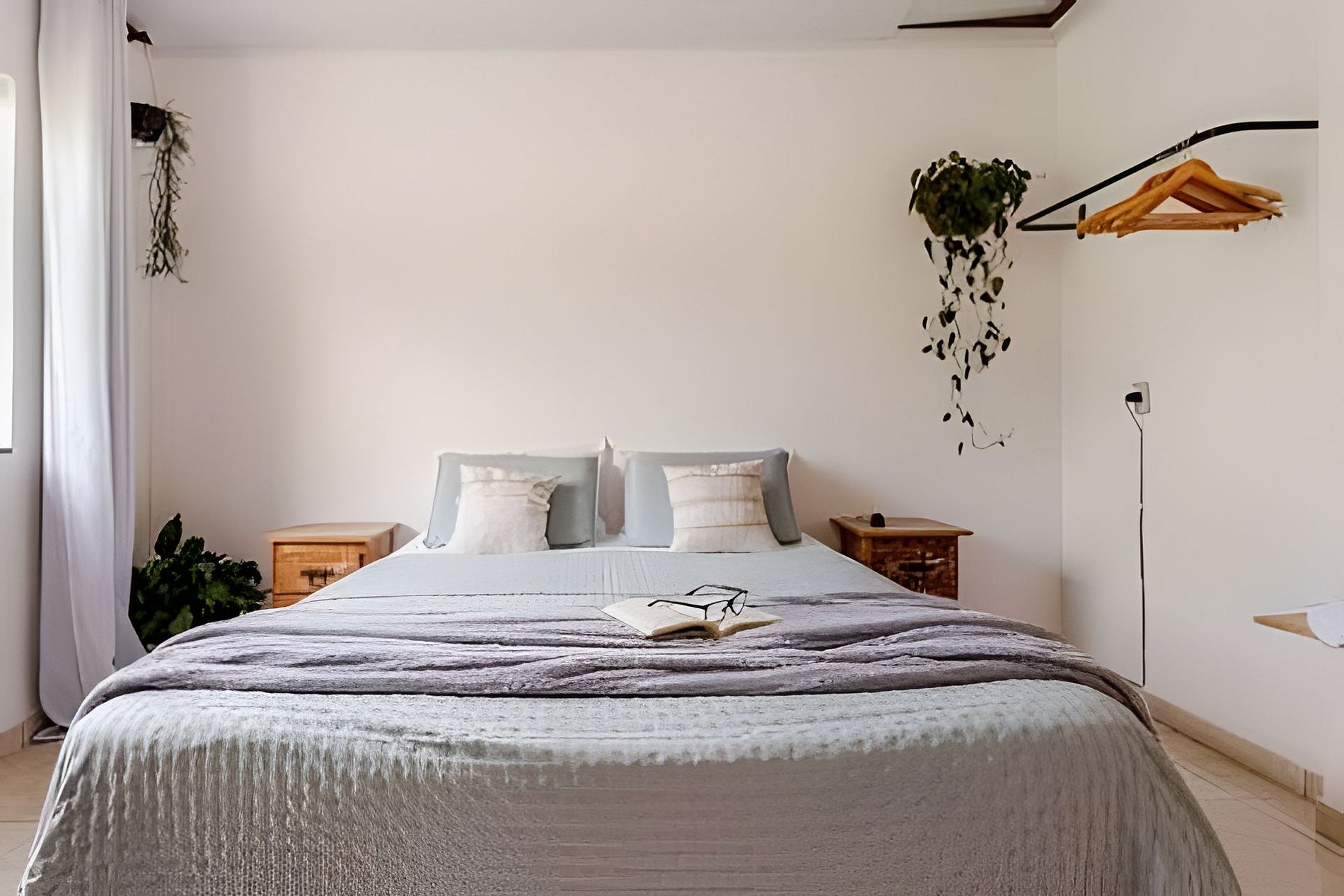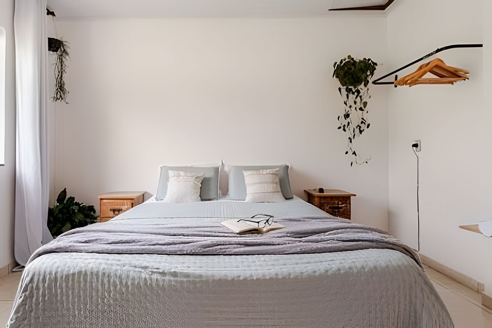 Tomada elétrica próxima à cama