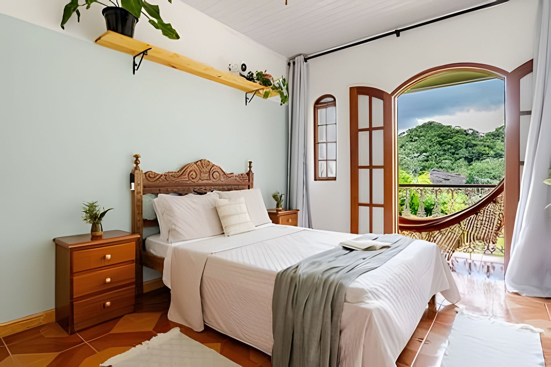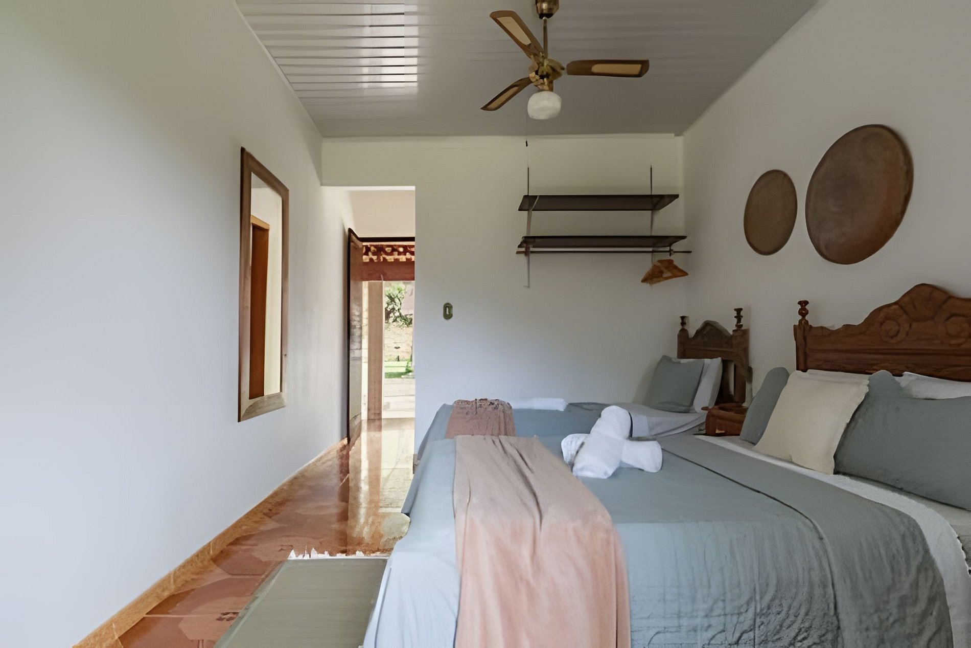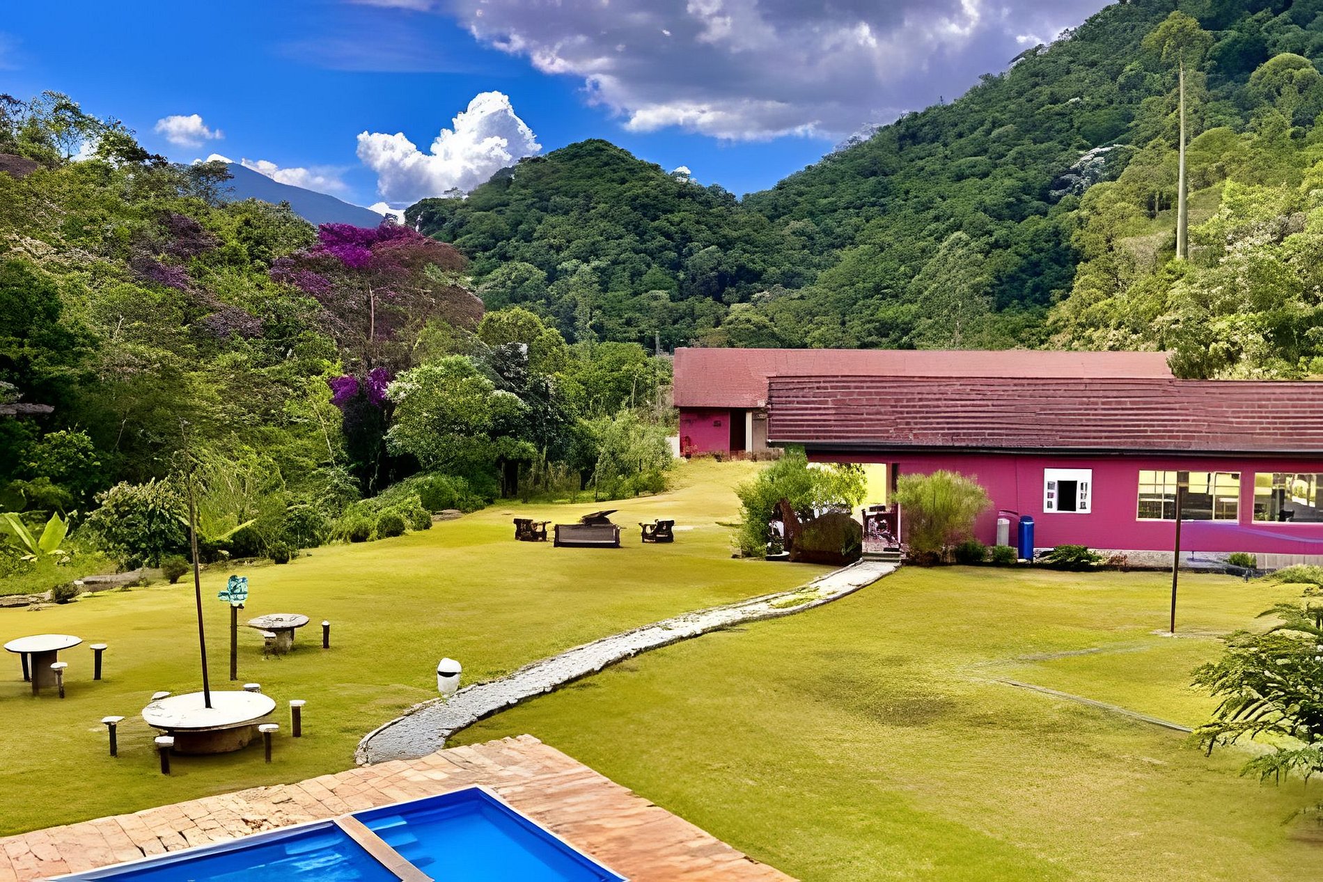 O Sítio Toca da Toca foi pensado para grupos que buscam natureza, espaço e tempo de qualidade. Com suítes confortáveis, áreas comuns amplas e muito verde ao redor, a Toca acolhe famílias, amigos e pequenos encontros que desejam viver a serra com mais leveza. Um lugar para estar junto. Aqui, o tempo desacelera, as conversas se alongam e a experiência acontece com mais presença. Se o que vocês procuram é tempo junto, a Toca te espera. A experiência aqui acontece entre convivência, natureza e liberdade. • 7 suítes privativas • áreas comuns amplas para reunir e compartilhar • cozinha equipada para preparo das próprias refeições • área externa com muito verde ao redor • piscina abastecida com água natural da nascente do sítio Durante a estadia, o grupo terá uso exclusivo dos espaços informados neste anúncio. Para reservas em configuração ampliada, com capacidade acima de 16 pessoas, entre em contato para consultar disponibilidade e valores. Eu estarei disponível para orientar desde o momento da sua chegada, tirar dúvidas e apoiar no que for necessário durante a estadia. Prezamos por uma experiência tranquila, com autonomia e acolhimento na medida certa. O Vilarejo de Toca da Onça é remoto e está localizado à 12 km de distância do centrinho de Lumiar, não possui grandes comércios, apenas poucas casas. Recomendamos que traga tudo o que for necessário para a sua estadia. Comércios como farmácia, posto de gasolina e mercado estão localizados em Lumiar. Os últimos 5,5 km de estrada para chegar ao sítio são de barro batido, carros rebaixados não chegam. Aqui não tem motoristas por aplicativos e/ou condução. O sítio está localizado a 2 km do Bar e Poço Toca da Onça, onde é possível tomar banho de rio e tem o bar servindo petiscos e bebidas, a entrada é paga por pessoa. Toca da Onça também possui um restaurante que funciona apenas para o horário do almoço em dias específicos. O Vilarejo é o local ideal para curtir a natureza e se conectar com o que é essencial. Alguns delivery de Lumiar entregam no local (sob consulta). Recomendamos chegar de carro, especialmente por se tratar de uma hospedagem voltada para grupos. Os últimos 5,5 km de acesso são por estrada de terra, e por isso não indicamos a chegada com carro rebaixado. Ao chegar, a experiência compensa: espaço, verde e privacidade para viver dias mais leves na serra. • Voltado para famílias, grupos de amigos e encontros tranquilos • Não oferecemos refeições ou serviços de alimentação • Eventos, festas e excesso de hóspedes não são permitidos • Não há sinal de celular na propriedade • Wi-Fi de fibra óptica disponível • Os últimos 5,5 km de acesso são por estrada de terra • Não recomendamos a chegada com carro rebaixado Moradas Calathea Onde a natureza mora dentro @moradascalathea