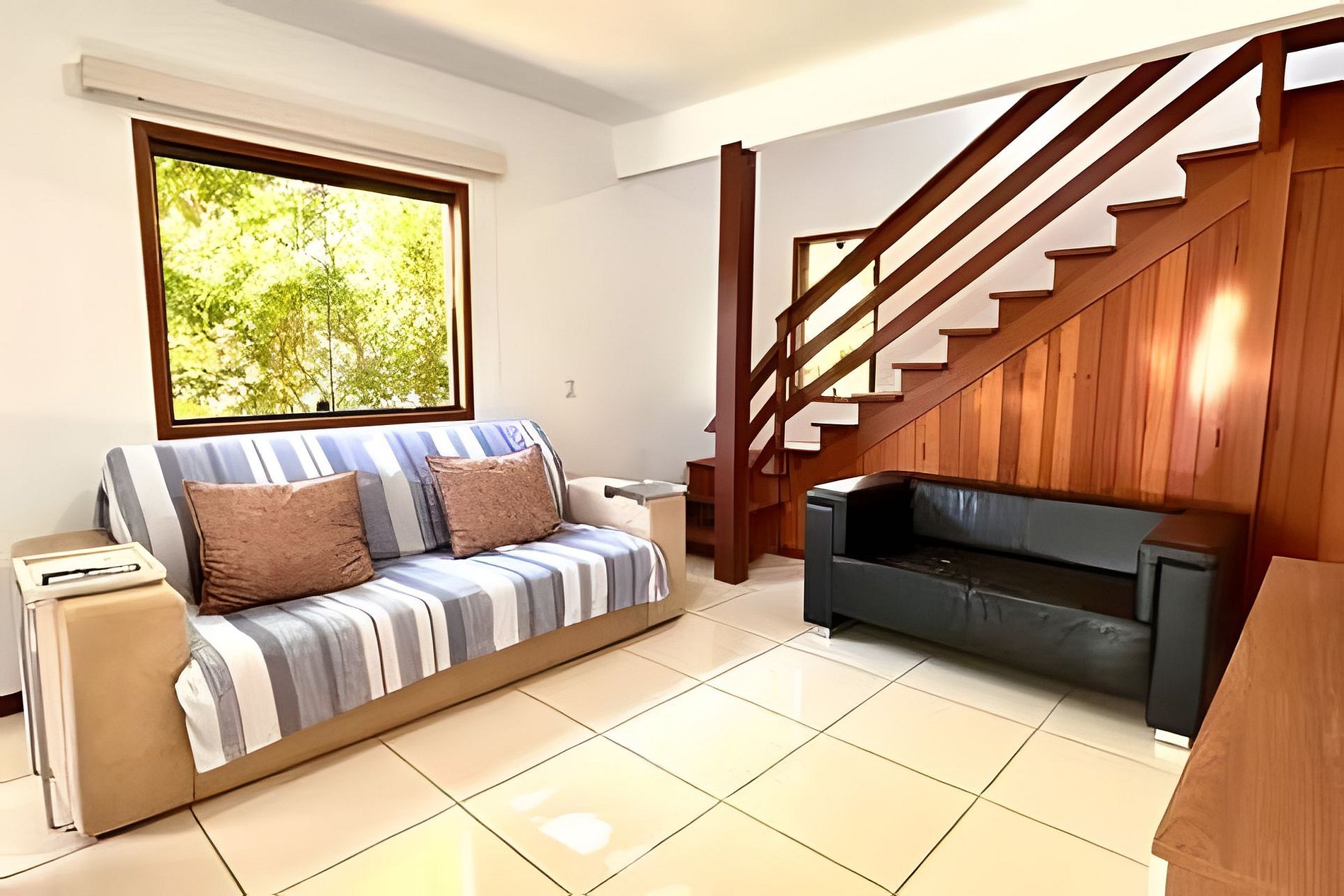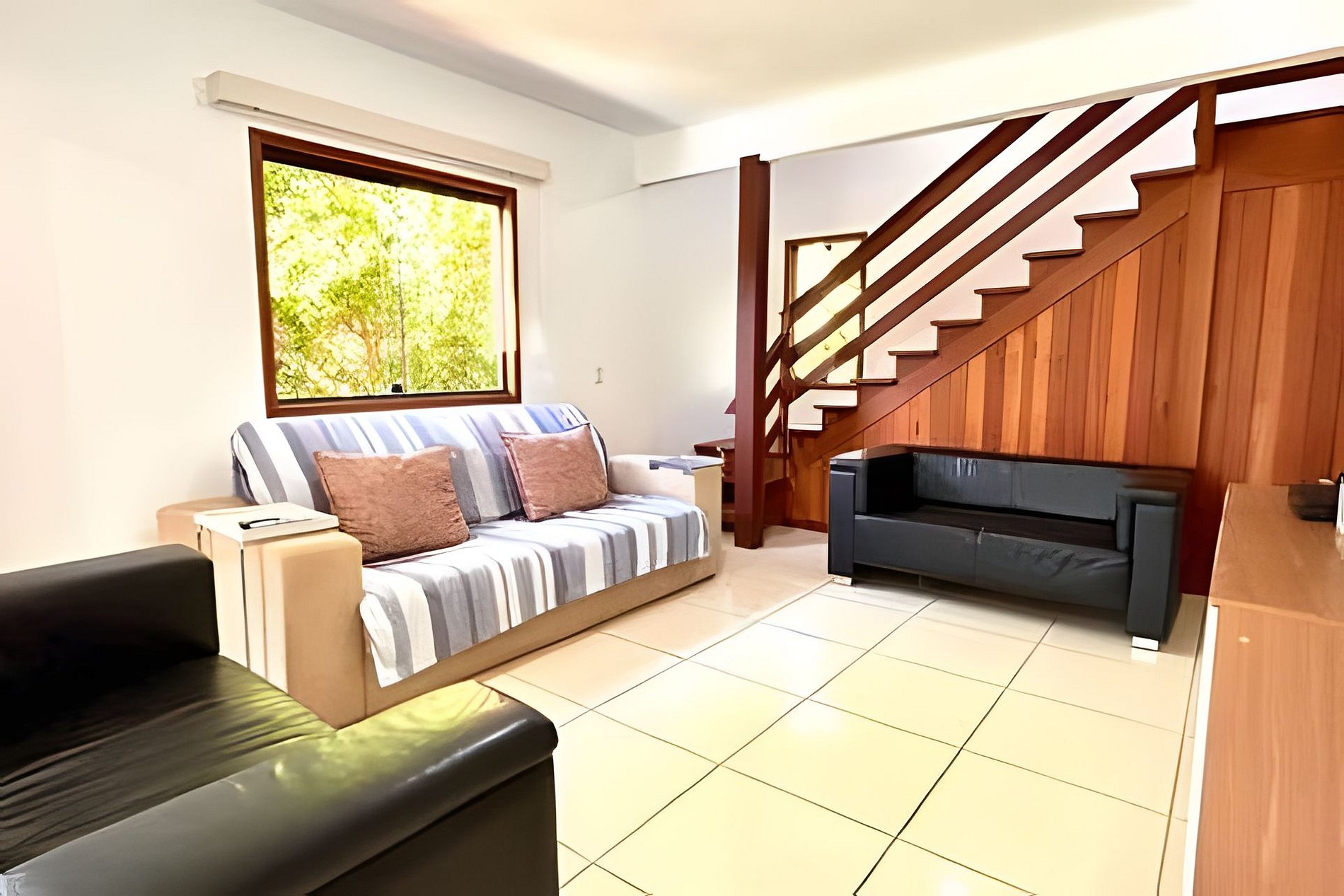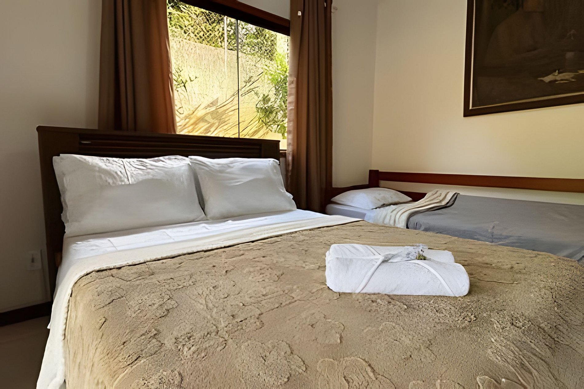 Aqui, a experiência acontece entre a vista das montanhas, o quintal com pomar e os ambientes amplos para ficar sem pressa. • Quarto no térreo com varanda e vista para o quintal • Quarto no andar superior com vista para as montanhas e varanda • Sala de estar e jantar integradas à cozinha • Cozinha equipada • Dois banheiros • Todos os ambientes com ar-condicionado • Quintal amplo com árvores frutíferas • Área externa com churrasqueira • Garagem para dois carros Uma casa para ficar, respirar e aproveitar com calma.